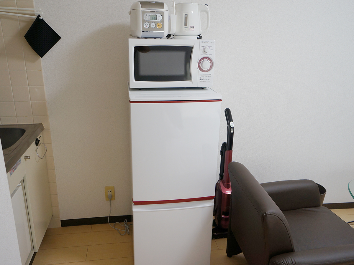 - 炊飯器・32インチ液晶TV・Blu-rayプレーヤー・電子レンジ・洗濯機・冷蔵庫・電気ポット・掃除機・ドライヤー・スリムイオンファン(送風機)