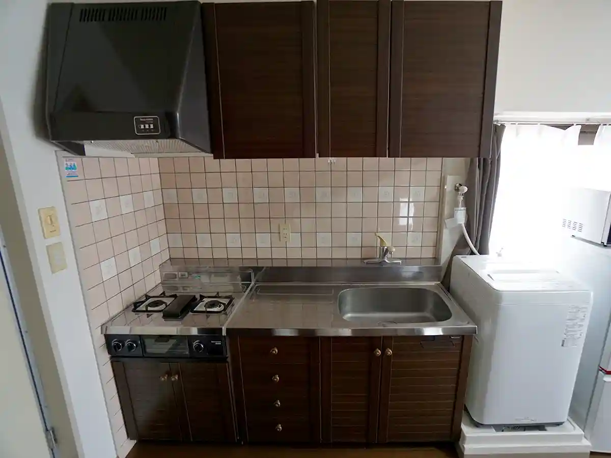 1Rタイプのお部屋ながら2口ガスコンロでキッチンスペースもかなり広く、自炊を楽しんで頂けます!