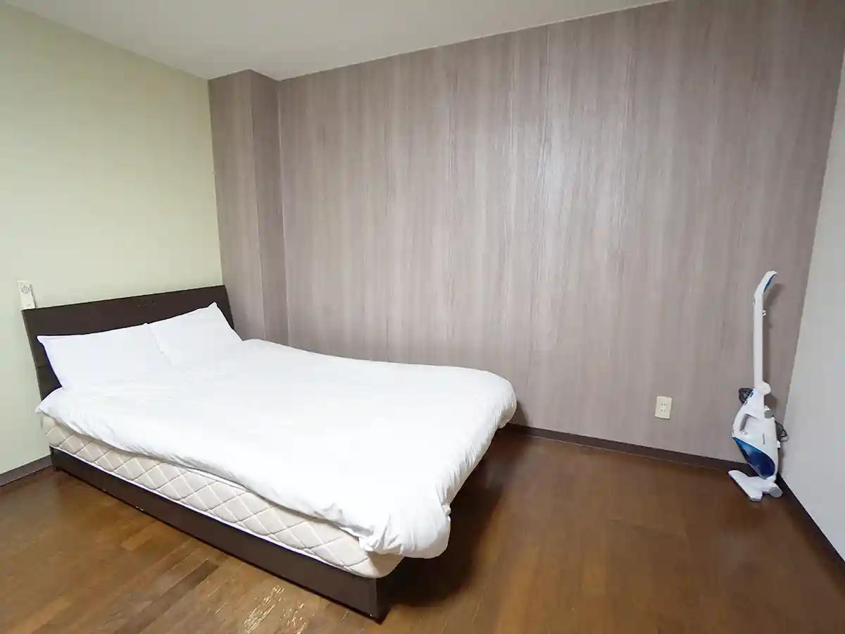 寝具はゆったりセミダブルベッド。 ソファベッドも完備しています。