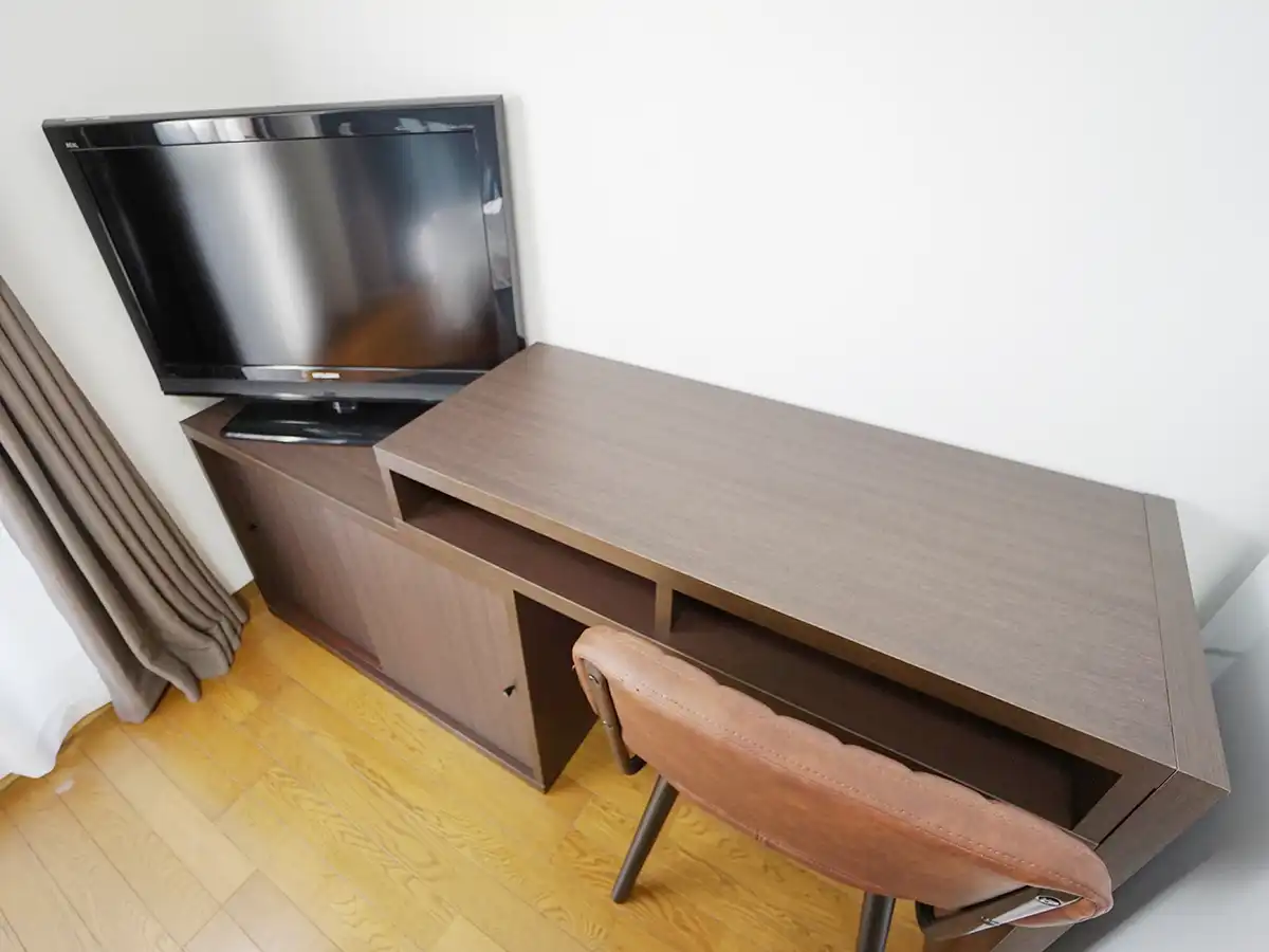 ・テレビ台と机が一つになったデスクタイプでお部屋広々。