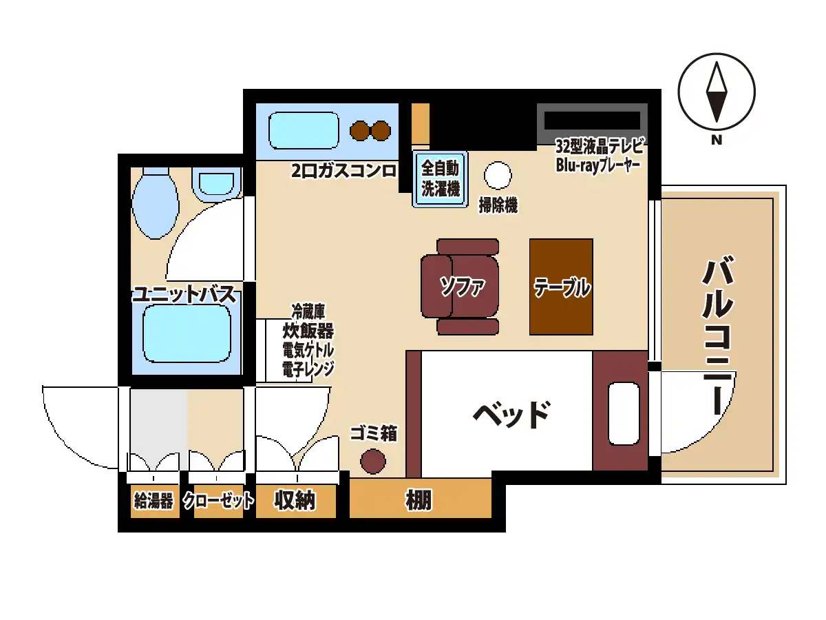 ※ コインランドリーがある場合などにより、お部屋に備品がないこともございます。予めご了承くださいませ。