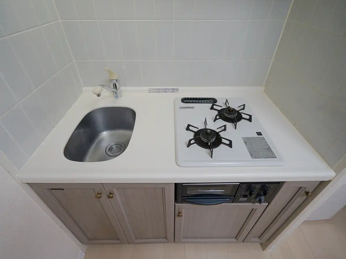キッチンは2口ガスコンロで、お料理がお好きな方にもオススメ。