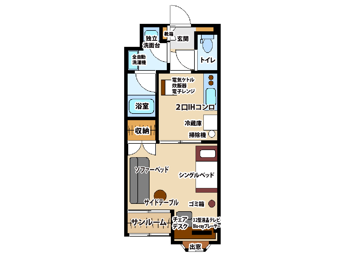 ※ コインランドリーがある場合などにより、お部屋に備品がないこともございます。予めご了承くださいませ。